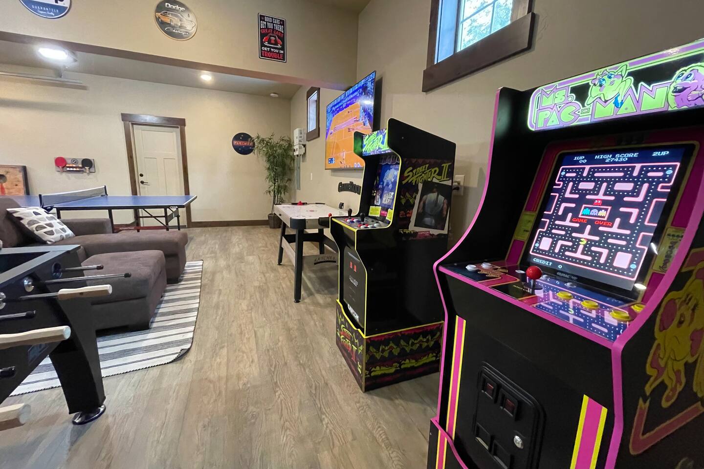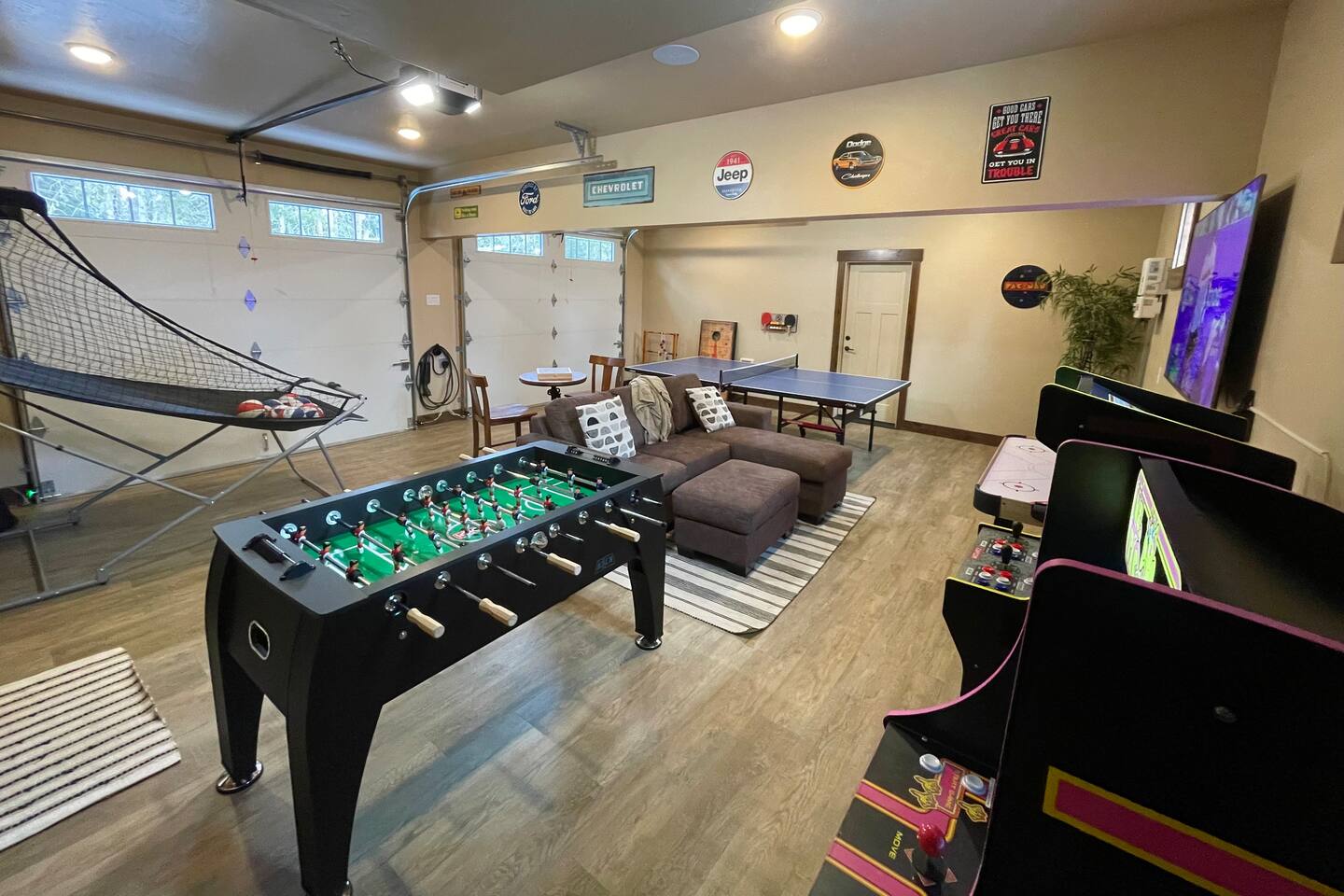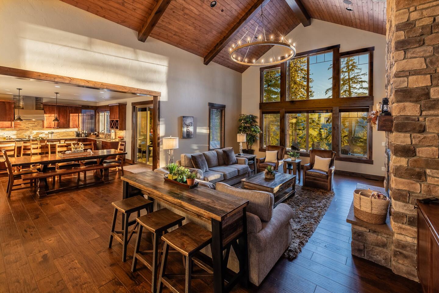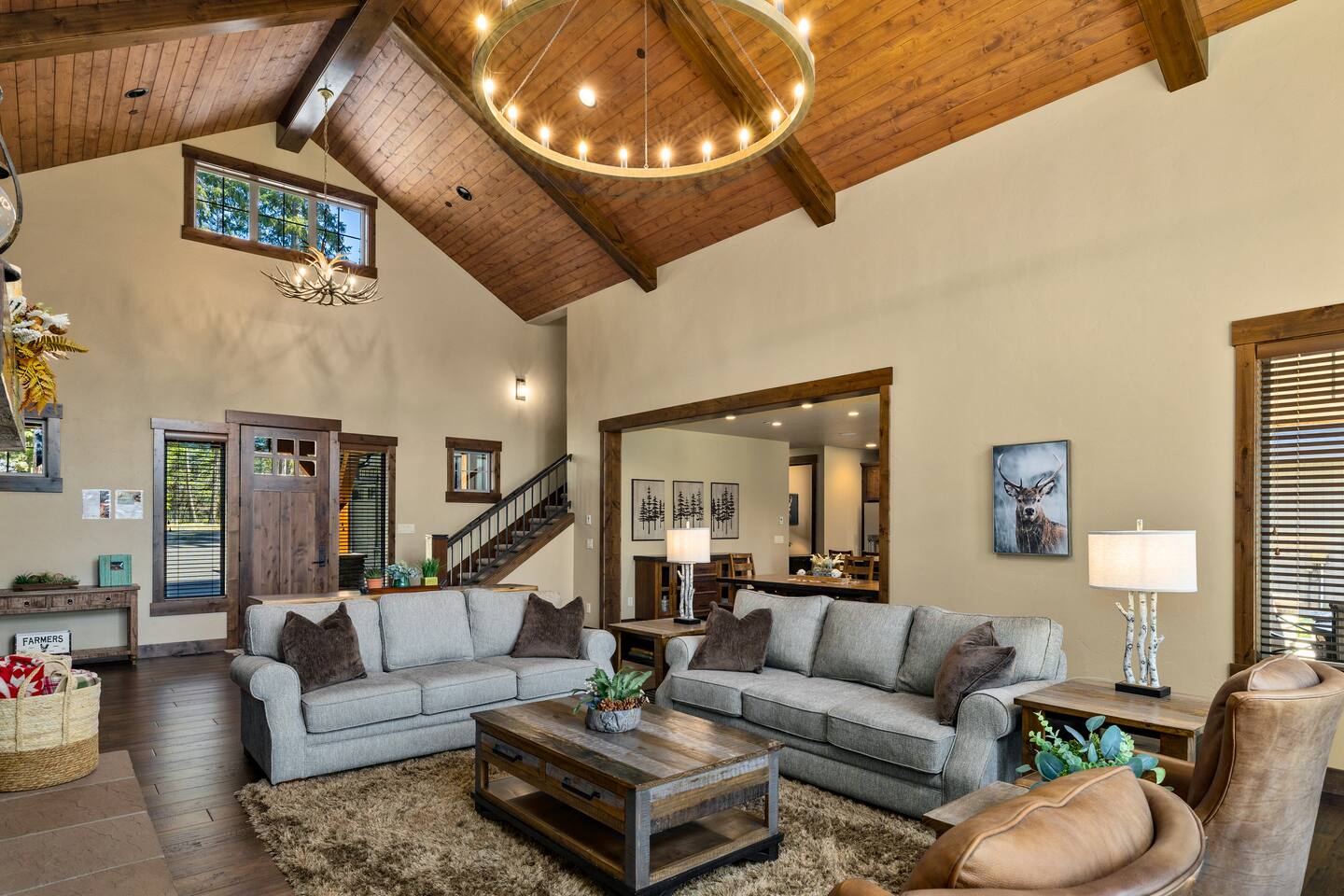 🏡 Welcome to Sunset Lodge – Your Dream Mountain Retreat! Nestled in the gated and prestigious River Ridge community in Suncadia, our unique location combines luxury and nature with panoramic views of the Cle Elum River Valley and stunning sunsets. Explore wooded trails right from your doorstep to the river and Nelson Farm, where you’ll find year-round free activities, a charming eatery, and a brand-new adventure park featuring the professionally designed pump track by Velosolutions—perfect for bikers, skateboarders, and scooter riders of all skill levels. Whether you’re relaxing on the patio or heading out for adventure, Sunset Lodge is the ultimate retreat for year-round relaxation and fun. 🛏️ Sleep in Comfort - 5 Bedrooms | 3.5 Bathrooms | 3,390sqft | Max Occupancy 18 - 3 King, 1 Queen, 1 Queen Sofa Bed, 2 Twin/Full Bunk Beds, 1 Full Mattress - Bedroom 1 (Main Floor): Master Suite King Size Bed + En Suite Bathroom - Bedroom 2 (Upper Floor): 2nd Master Suite Queen Size Bed + En Suite Bathroom - Bedroom 3 (Upper Floor): King Size Bed - Bedroom 4 (Upper Floor): King Size Bed - Bunk Room connected to Bedroom 4: Two Twin/Full Bunk Beds and barn door for privacy (sleeping 6) - Kids Cozy Corner connected to Bedroom 4: Full-Size Mattress - Heated and Fully Finished Garage Game Room: Queen Sofa Bed 🎮 Entertainment Galore - Two arcade machines with a total of 26 games, including classics like Pac-Man, Street Fighter, Galaga and 1944 - Ping pong, foosball, air hockey and pop-a-shot - Six 4K Smart TVs pre-loaded with 100+ live channels through YouTube TV, plus Smart TV capability to stream your favorite content - Large collection of lawn games, including cornhole, ladder ball, giant Jenga, and bocce ball - Portable pickleball set to transform the spacious driveway into a place for endless pickleball fun 🌄 Unmatched Location and Outdoor Living - Massive gas fire pit with 7 Adirondack chairs - Private seven-person hot tub - Covered seating and dining area warmed by infrared heat lamps - Three-burner BBQ with direct connection to gas line - Two hammocks strung between pine trees by the hot tub - Perched in a quiet setting with grassy lawn overlooking the Cle Elum River Valley and stunning sunsets - Wooded trails from the house to the Cle Elum River, Nelson Farm, and the larger network of Suncadia trails 🍽️A Kitchen Made for Feasts - Fully equipped kitchen with a commercial-style range, high-end appliances, and a well-stocked pantry - Additional touches include a rice cooker, air fryer and slow cooker - An array of coffee-making options such as a Keurig, drip coffee maker, French press, Bialetti pot, and coffee grinder - Spacious center island with bar seating for 4, doubling as a hub for meals and connection 🧸 Perfect for Families - Highchair, pack-and-play, baby monitor, children's dishes and silverware - A bunk room and kid's cozy corner for creating lasting memories - A large collection of puzzles, board games, card games and books to ensure endless hours of fun for every age group - Walk to Suncadia’s Nelson Farm to enjoy year-round free activities, a charming eatery, and the brand-new adventure park featuring the professionally designed pump track by Velosolutions—perfect for bikers, skateboarders, and scooter riders of all skill levels seeking endless outdoor fun ⚡ Convenience at Every Turn - Level 2 EV charger (J1772 plug) and 240V Nema 14-50 outlet - Six-zone built-in sound system with Wi-Fi streaming - High-speed Wi-Fi with a 5-zone network for throughout coverage - Dedicated office space with desk, chair, sunny window, and locking door - Spacious driveway with generous parking for about 10 cars 🧴 Thoughtfully Stocked Essentials - Shampoo, conditioner, body wash and hand soap - Hair dryers in every bathroom - Iron and ironing board - Laundry and dishwasher pods - Plastic wrap and foil - Coffee, tea, hot chocolate, sugar, sweeteners, spices, and oil - Gift basket with every booking 🌱 Committed to Sustainability - Large array of solar panels that generate enough energy during the summer months to meet the home's entire electricity needs - Watering system designed to minimize water consumption while keeping plants thriving and healthy - Smart thermostats integrated with the booking calendar and configured to automatically optimize energy usage when the house is not occupied 🎉 Multi-Home Benefits for Larger Gatherings - We have two Suncadia homes in the same neighborhood, just a short walk from each other and along the same ridge. - Both homes have similar size and style, and spectacular mountain and sunset views. - When booked together, they can comfortably host up to 36 guests - ideal for reunions, retreats, small outdoor weddings, or multi‑families looking to stay close together while enjoying the privacy of two separate homes. - Ask about our multi‑home discount when booking both properties. The second home, The Lookout, is listed under the host's listings. ✨ Your celebration, our space—let’s make it memorable - While events are not permitted at the property, we understand unique celebrations sometimes call for special spaces, and exceptions may be made. - Our home’s scenic backdrop has hosted memorable gatherings on a case‑by‑case basis. - If you’re considering hosting a family celebration, company retreat, or small outdoor wedding, we welcome your inquiry. 📜 Important House Rules - Guests must be 28 years or older to book the property. - Please respect quiet time from 10 PM to 8 AM to maintain the tranquility of our neighborhood. This is strictly enforced by Suncadia, with fines of up to $1,000 for violations. - Due to family allergies, pets are not allowed. Violations will result in a $500 fine. - RVs, trailers, and street parking are not permitted. - Open fires and charcoal burning are strictly prohibited. - For the privacy of our neighbors and to comply with Suncadia regulations, drones are not allowed. 📌 Other Importa